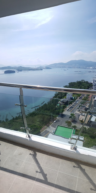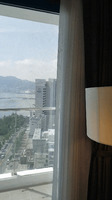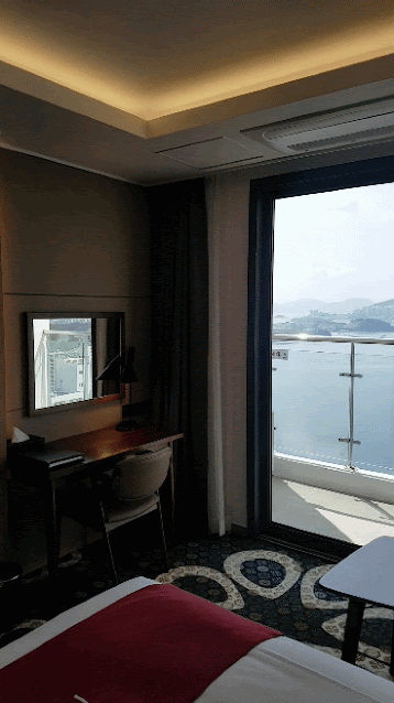 마지막으로 "라마다 프라자 돌산 여수"의 경도 오션뷰입니다. 뷰가 진짜 걸작이에요. 야경도 정말 아름답습니다. 야경은 투숙하시면서 즐기시길 바랍니다.