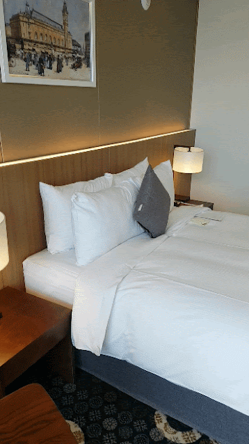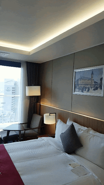 디럭스 더블룸을 리뷰해보습니다. 퀸사이즈 더블베드에요. 깔끔하세 세팅되어있어요. 바닥은 카펫이에요. 새로운 호텔이라 모든 상태가 깨끗했어요. 이 때, 예약을 해야해요. 호텔 할인 예약하기(클릭)