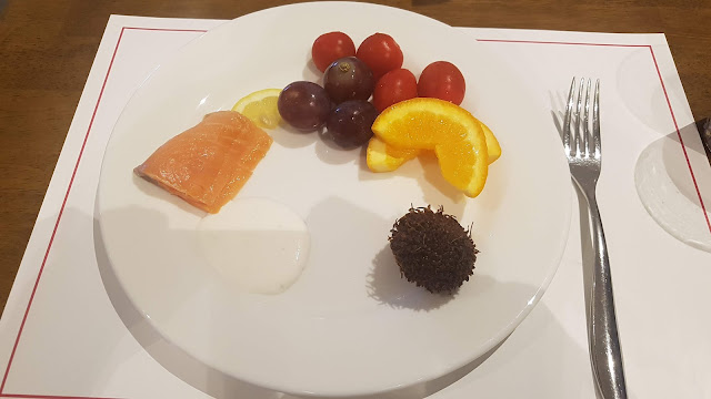 콜드컷으로는 다양한 드레싱과 토핑을 포함한 "커스터마이즈 샐러드" 그리고 훈제 연어가 있어서 에피타이저로 즐기기 좋았습니다. 프리메이드 샐러드: 연어 그린 샐러드, 파스타 샐러드, 블루베리, 단호박 샐러드가 있습니다. 그리고 과일, 요거트, 씨리얼이 있었어요. 그리고 귀여운 어린이용 스푼까지 있어서 가족과 함께 식사하기 좋은 식당이에요.