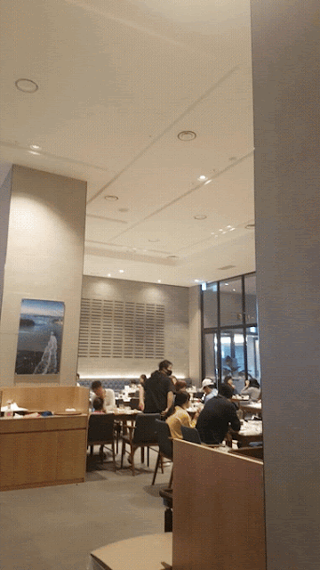 "Rabelle Restaurant"의 내부입니다. 손님이 정말 많지요? 천장이 높은 식당인 것이 특징이에요. 그리고 갤러리처럼 캔버스화가 걸려있다는 게 인상적입니다. 그리고 뷔페 스타일 레스토랑입니다.