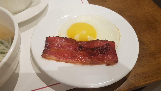 그리고 라이브 키친에서 받아온 에그 & 베이컨입니다. 써니사이드라서 저렇게 계란노른자가 바이브레이션을 하네요. ㅋㅋ. 저는 튀긴 베이컨을 계란노른자에 적셔먹는 것을 좋아합니다. 맛있어요.