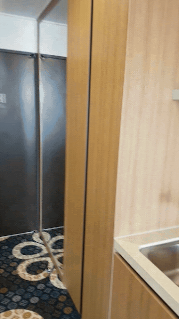 샤워 부스입니다. 천장 샤워기, 핸드 샤워기가 모두 물이 나옵니다. 배수도 막힘이 없어요. 새로운 호텔이기 때문에 깨끗해요.