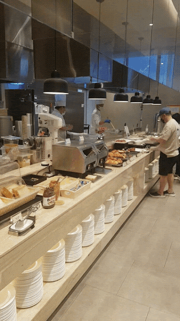 빵 코너입니다. 식사용 빵에서 디저트 빵까지 빵 종류가 정말 다양했어요. 그리고 그 옆에는 라이브 키친이에요. 쌀국수와 달걀 요리를 부탁할 수 있었어요.