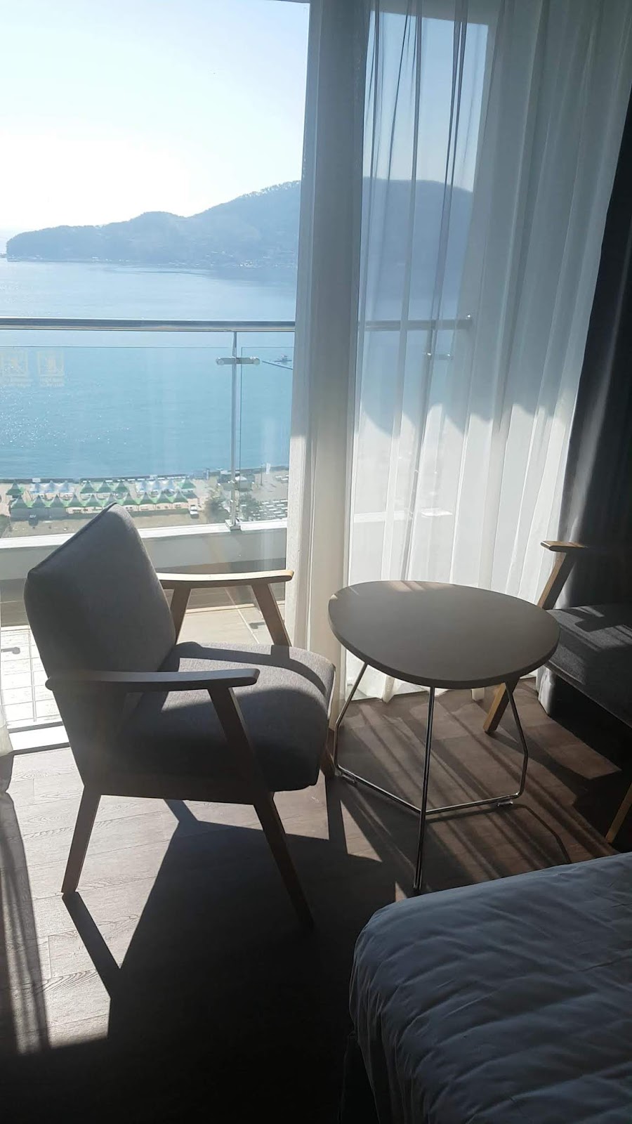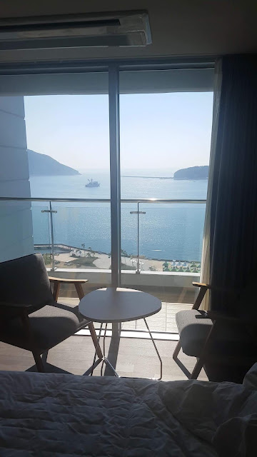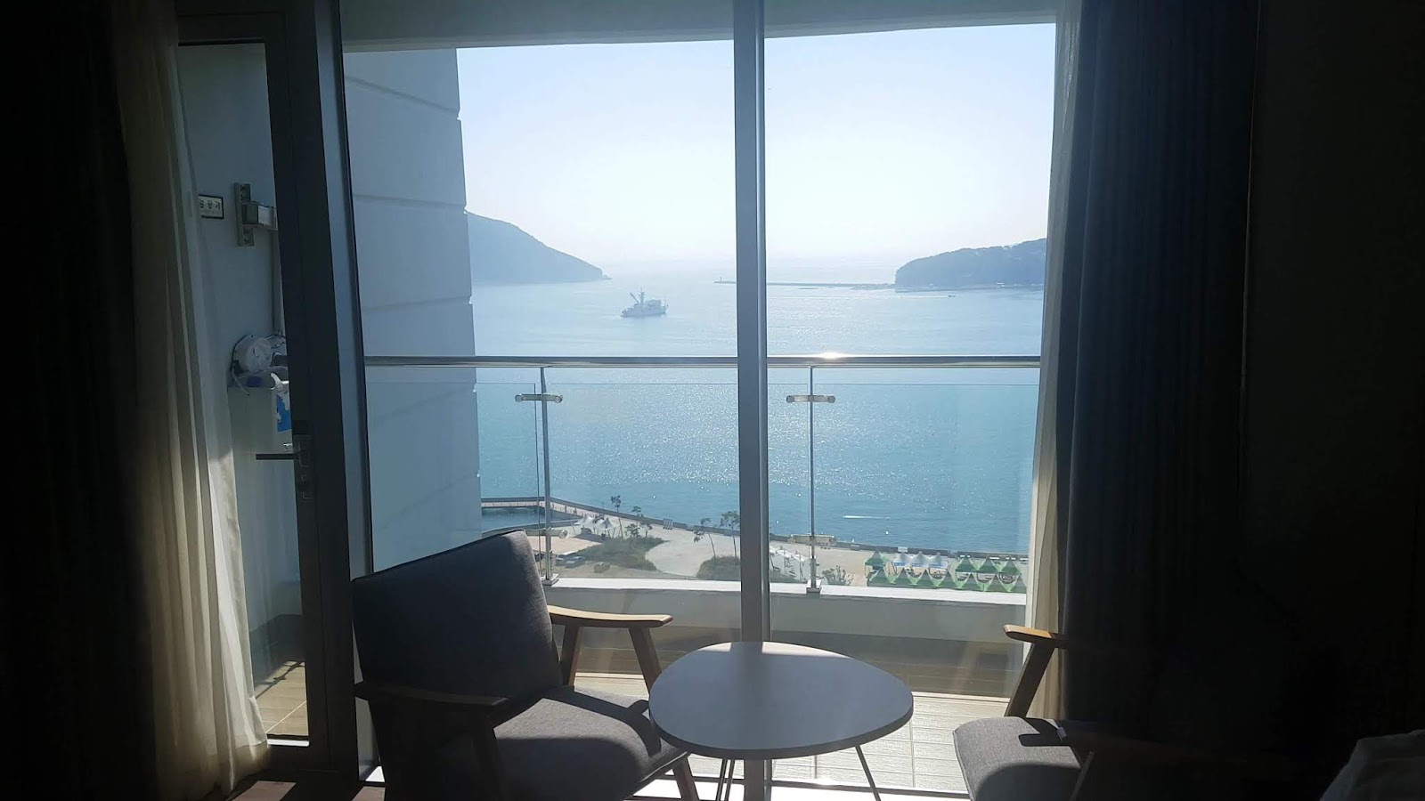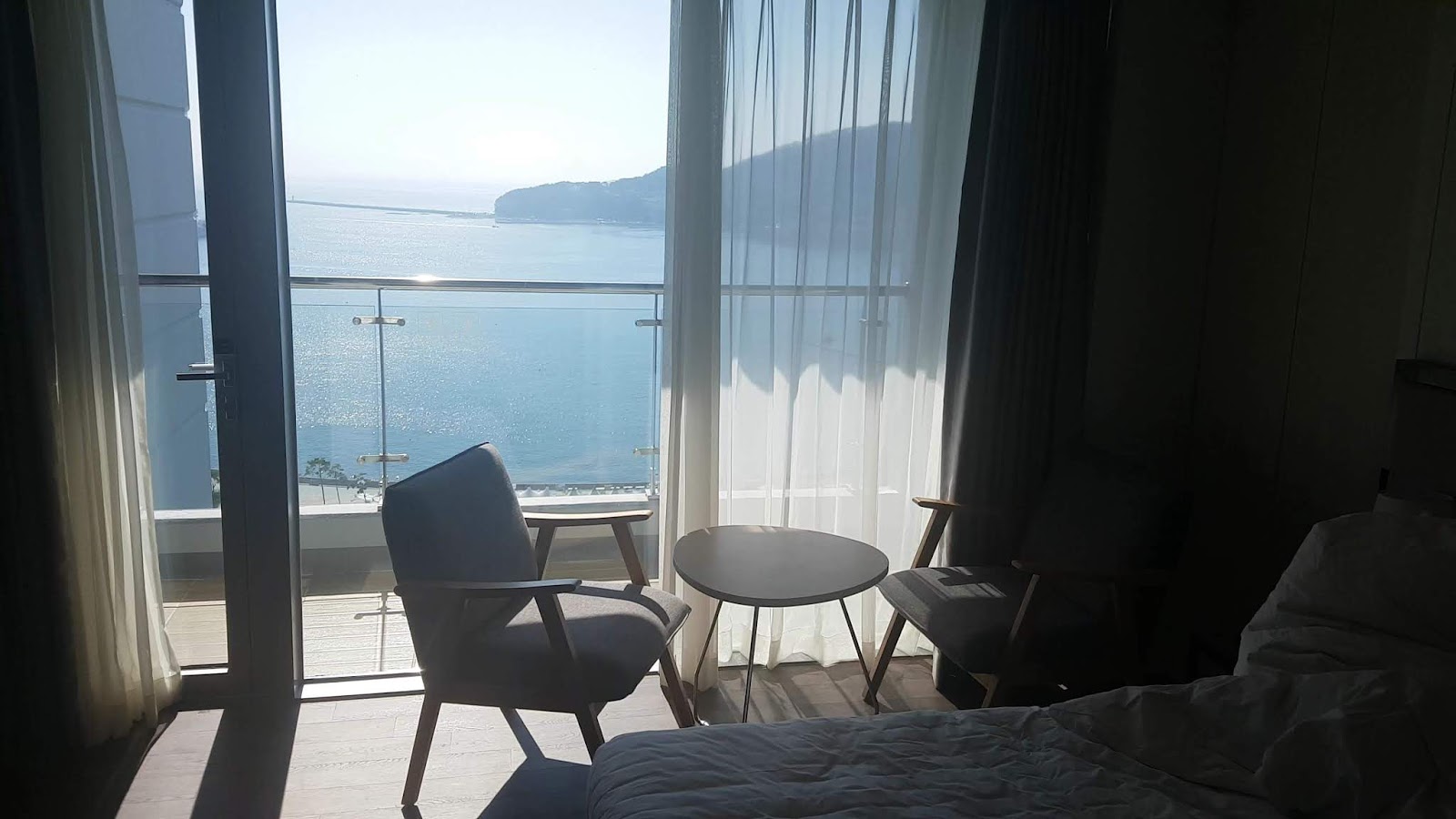 그리고 라마다 스위츠 거제가 좋은 게 전객실 바다 전망 플러스 테라스 구조입니당.~ 테라스에 나가서 바닷 공기를 마실 수 있는 게 참 좋았어요.