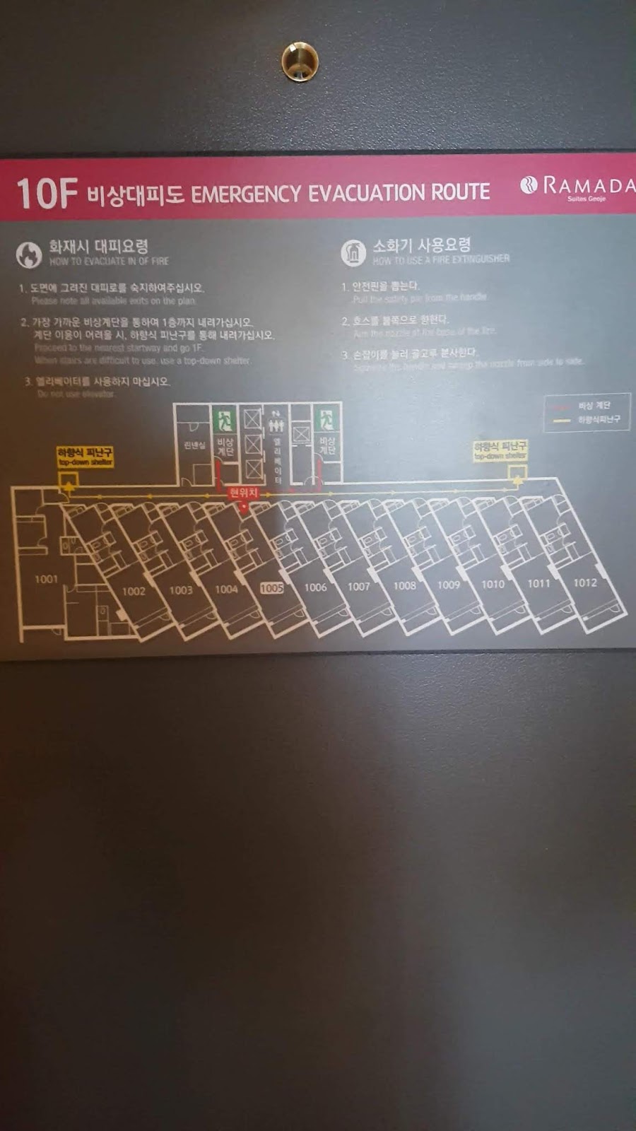 현관에 붙어있는 피난 안내도입니당.~ 전 객실이 바다 전망일 수 밖에 없는 구조입니당.~