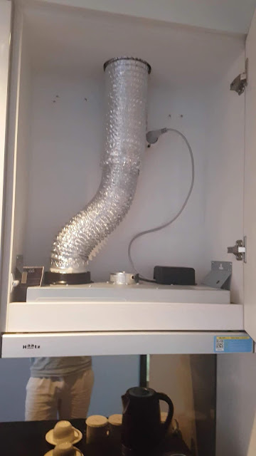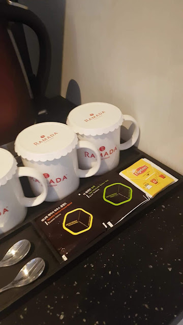컵이랑 포트, 커피, 차 있네요. 그리고 후드가 있어요. 인덕션 같은 취사 시설은 없는데, 이 호텔 자체가 호텔이기보다, 리조트와 비슷한 구조이긴 해요. 뭐 운영업체가 라마다로 들어온 혼종 상태인가봐요.ㅎㅎ. 아무렴~