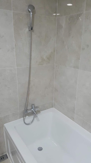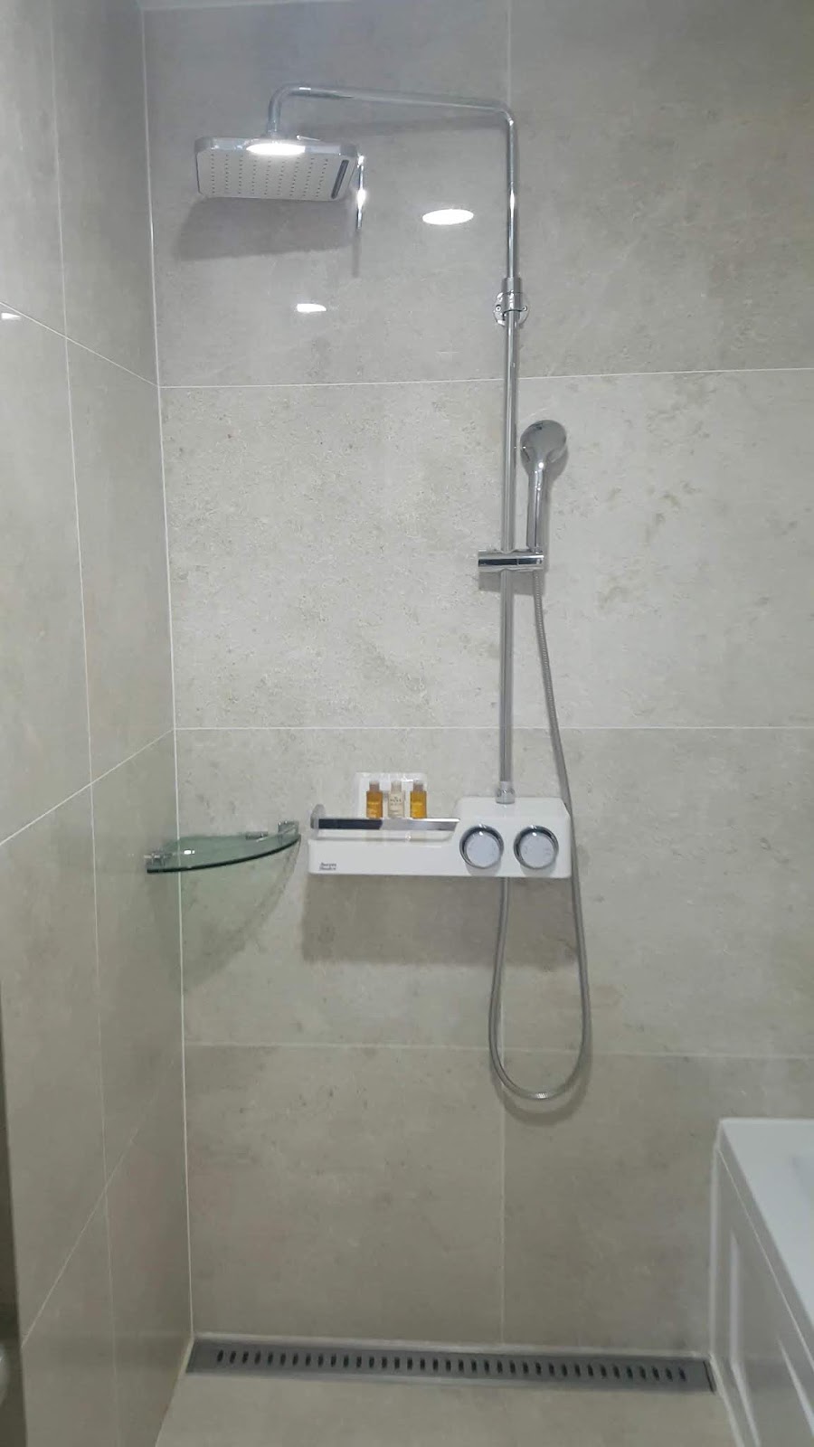 샤워실 진짜 넓어요. 이런 샤워실은 처음봐요. 샤워 공간과 욕조가 분리되어 있습니당.~ 샤워 대는 아메리칸 스탠다드.