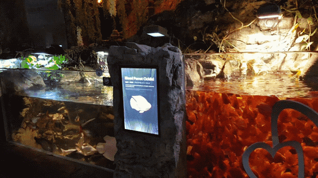 물 강아지라는 별명을 을 가진 플라워혼피시, 디스커스, 투명한 물고기까지 "아쿠아 포레스트" 초입의 작은 수조에서 감상할 수 있었어요.