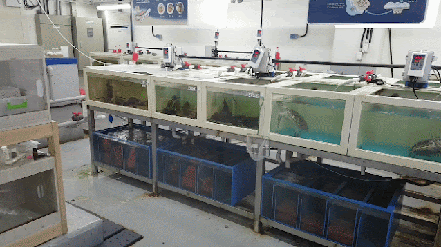 한화 아쿠아플레닛 여수의 인큐베이터에요. 새끼 바다 거북이 보호받고 있는 모습입니다. 귀여웠고, 아쿠아리스트 분들이 어떻게 일하시는 지를 공감할 수 있는 공간이었어요.