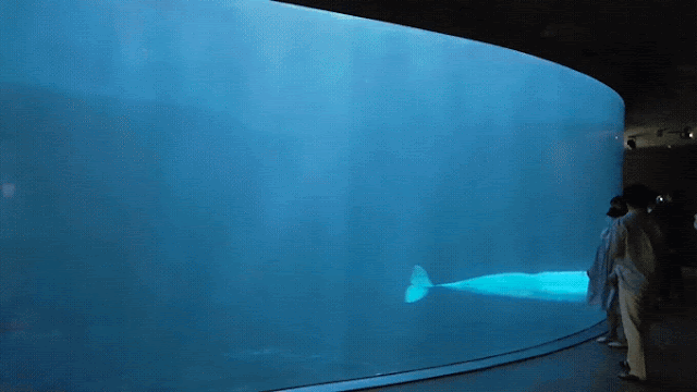 다음으로 대형 수조를 만날 수 있습니다. 그리고 그 안에 있는 벨루가입니다. 정말 신비롭고 영롱한 모습을 보여줍니다. 정말 대형 수조에 벨루가가 한 마리가 살고 있지만, 수조가 좁아 보였습니다. 수영하는 모습이 굉장히 아름다웠던 벨루가.