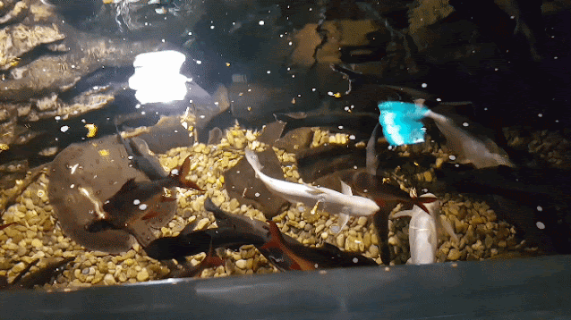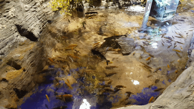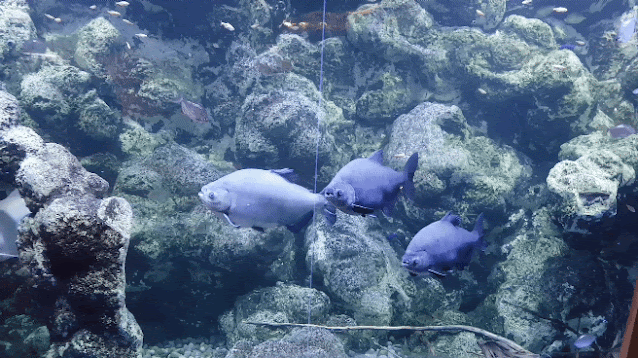 그리고 드디어 피라냐를 만날 수 있는 피라냐 타워입니다. 계단을 따라 올라가면 피라냐를 더욱 자세하게 볼 수 있어요. 아쉽게도 먹이를 먹는 모습을 보지 못했습니다. 피라냐는 동글동글하게 생겨서 귀여운 면도 있네요.
