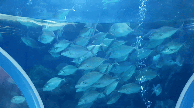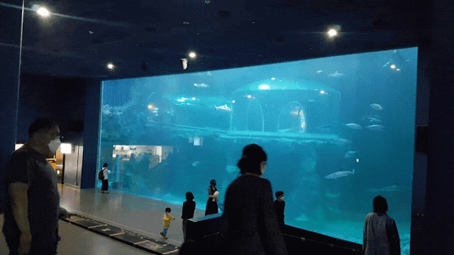 그리고 메인 수조의 중심에서 360도로 관람이 가능한 "아쿠아돔"이에요. 잠수함을 탄 것처럼, 혹은 스노쿨링을 하는 것처럼, 물 속에 있다는 느낌이 듭니다. 그리고 메인 수조의 "오션 라이프들"을 생생하게 감상하기에 좋았어요. 메인 수조를 나가면 아쉽게도 아쿠아리움에서의 여행은 끝이 납니다.