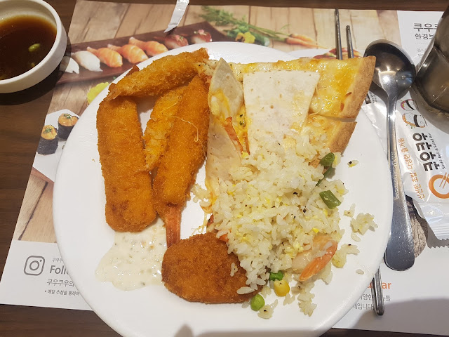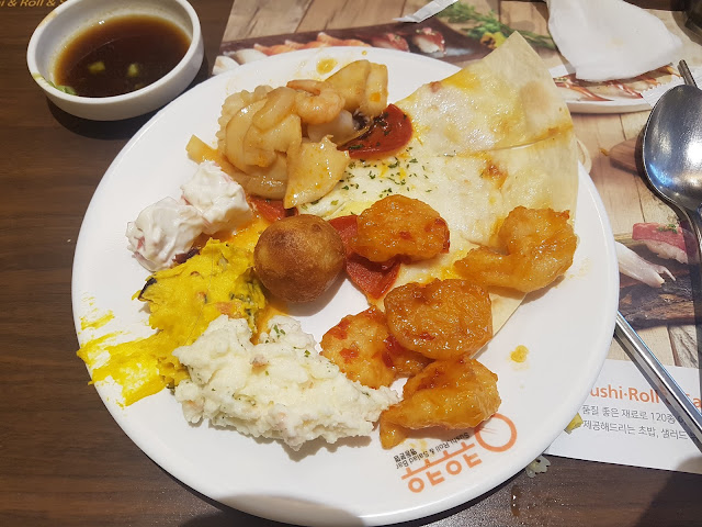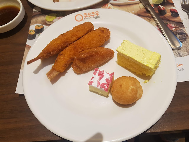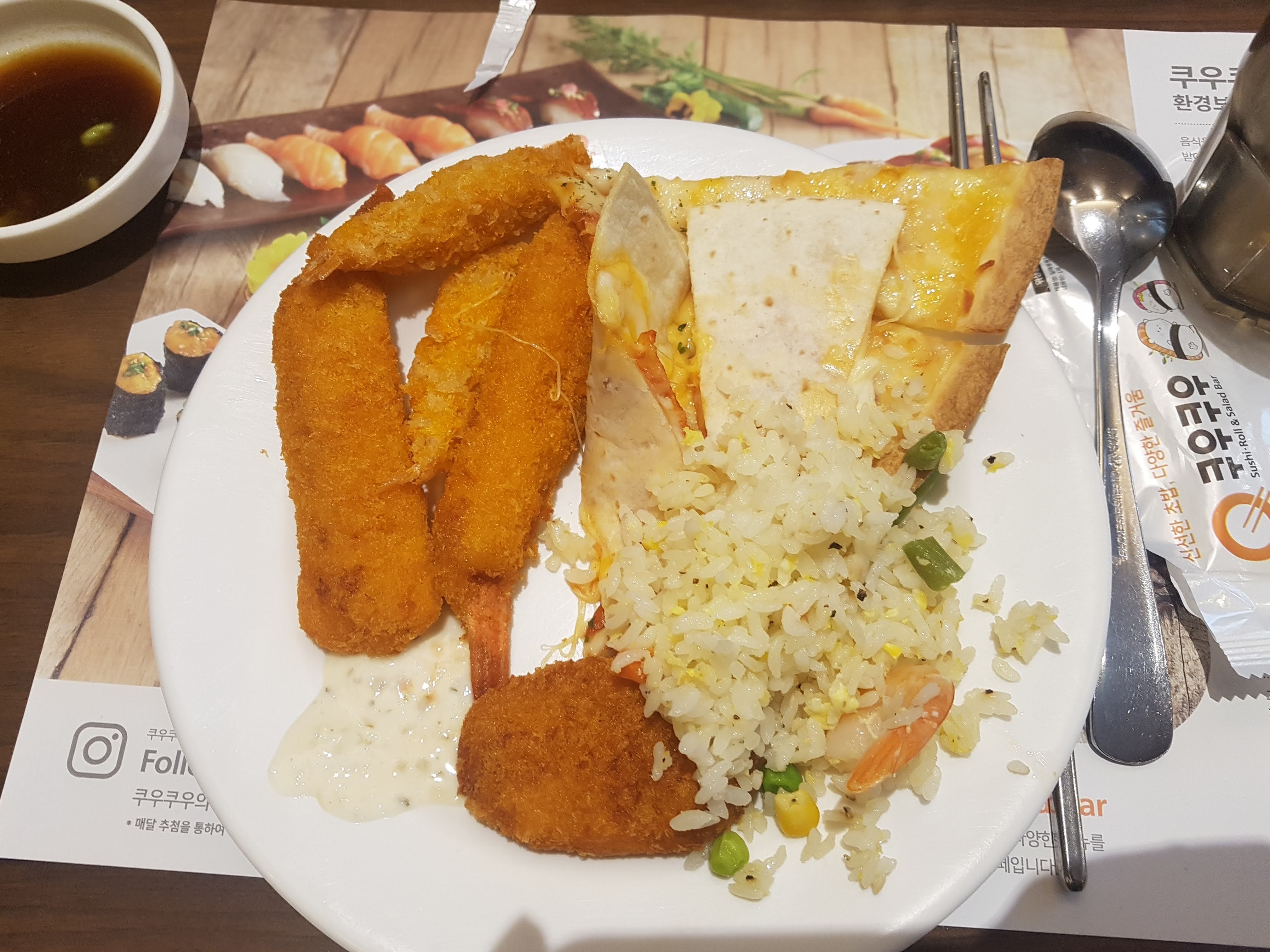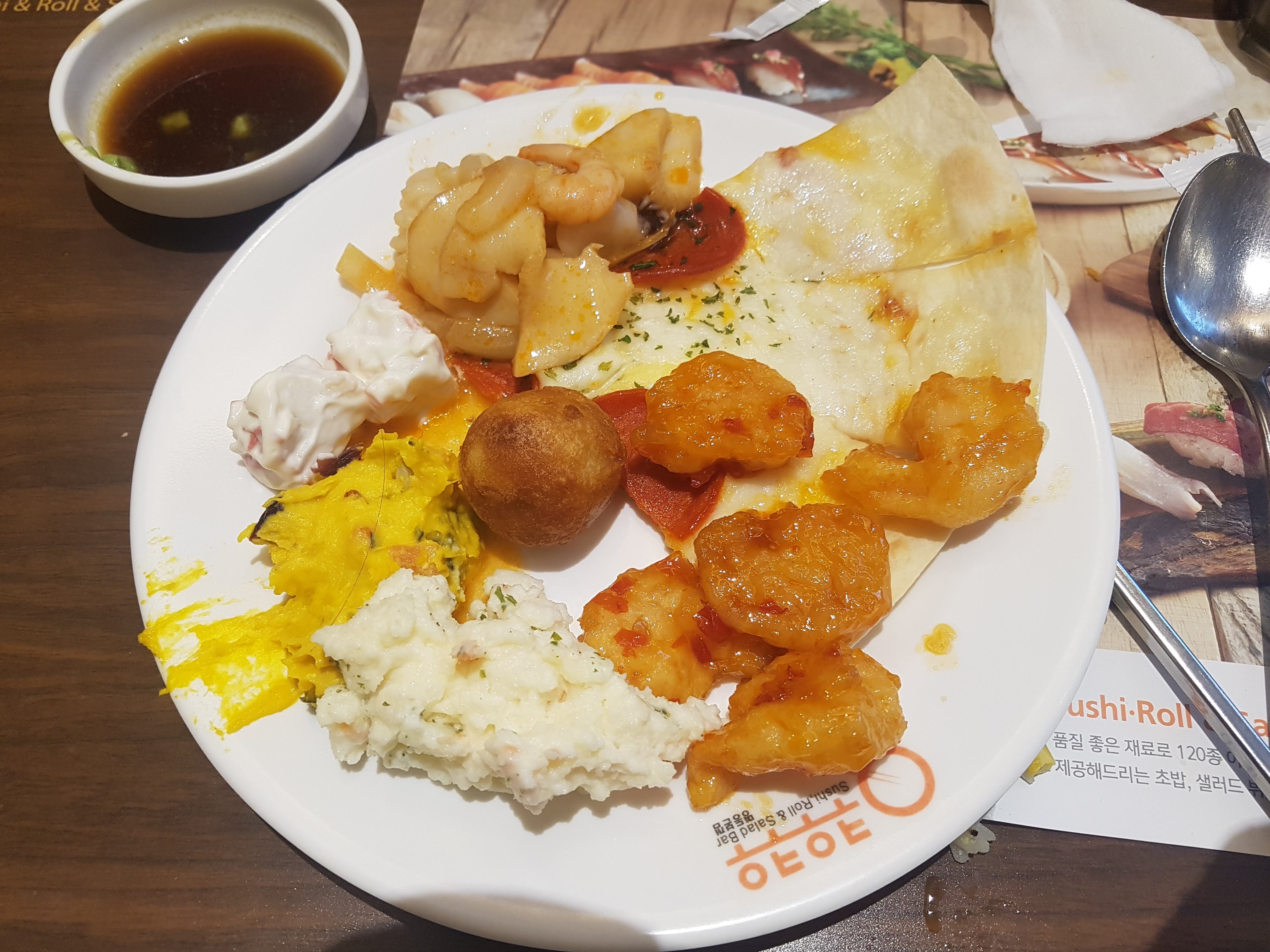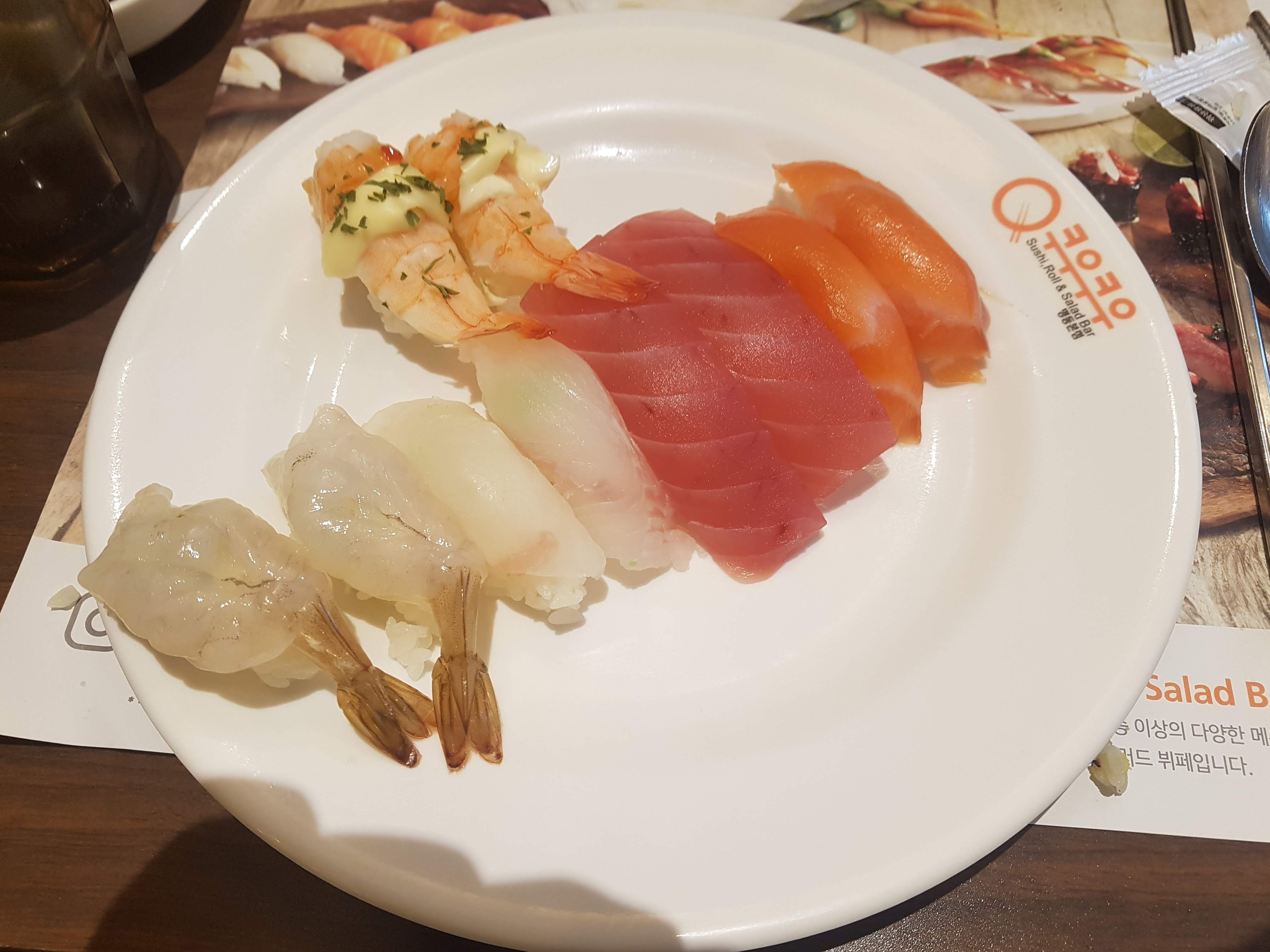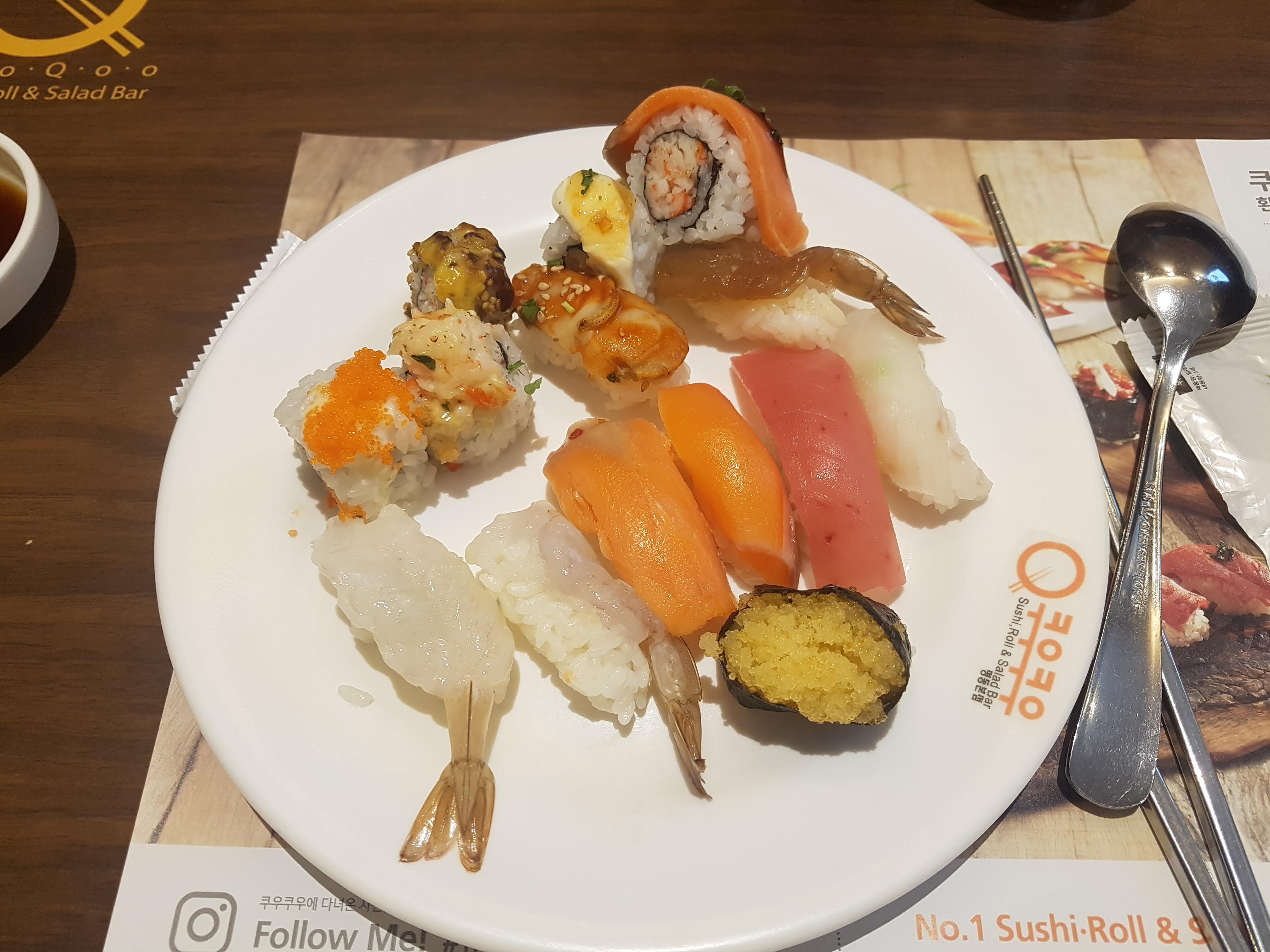 누가 뷔페 와서 채소부터 먹으라고 했나요. 쿠우쿠우는 나만의 기호로 첫빠따부터 해비하게 스시로 달려줍니다. 스시가 에피타이저이고, 메인입니다. 쿠우쿠우 생선 스시가 괜찮았어요. 롤은 이날 좀 별로였네요.
