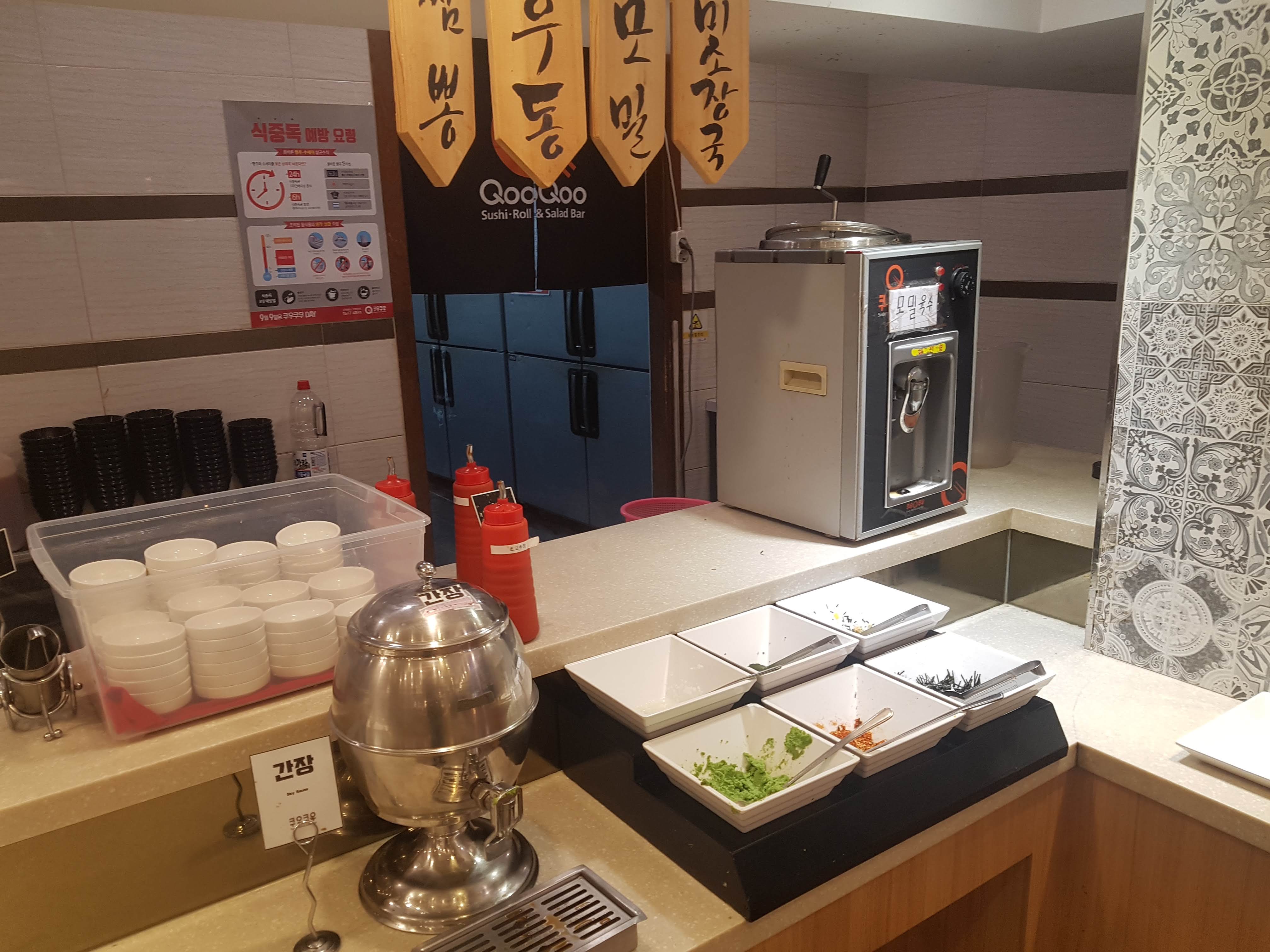 짬뽕, 우동, 모밀, 장국 코너에요. 스시 먹을 때 장국 꼭 먹어야돼요. 쿠우쿠우 스시는 급하게 먹다 체할 수 있으니까 장국 필수!