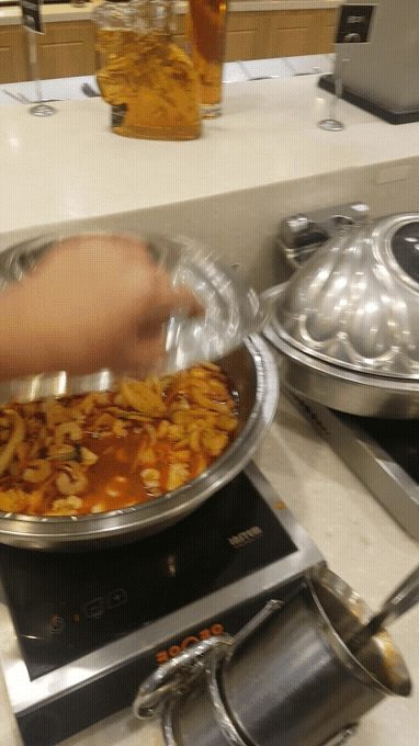 맛있는 일품 요리 코너: 팔보채, 불고기, 카라아게, 칠리새우, 탕수육, 깐풍기, 볶음 우동, 구운 통마늘.